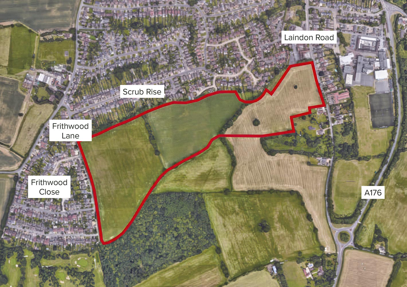 The site lies just south of Billericay’s built-up area, with direct access from Laindon Road.